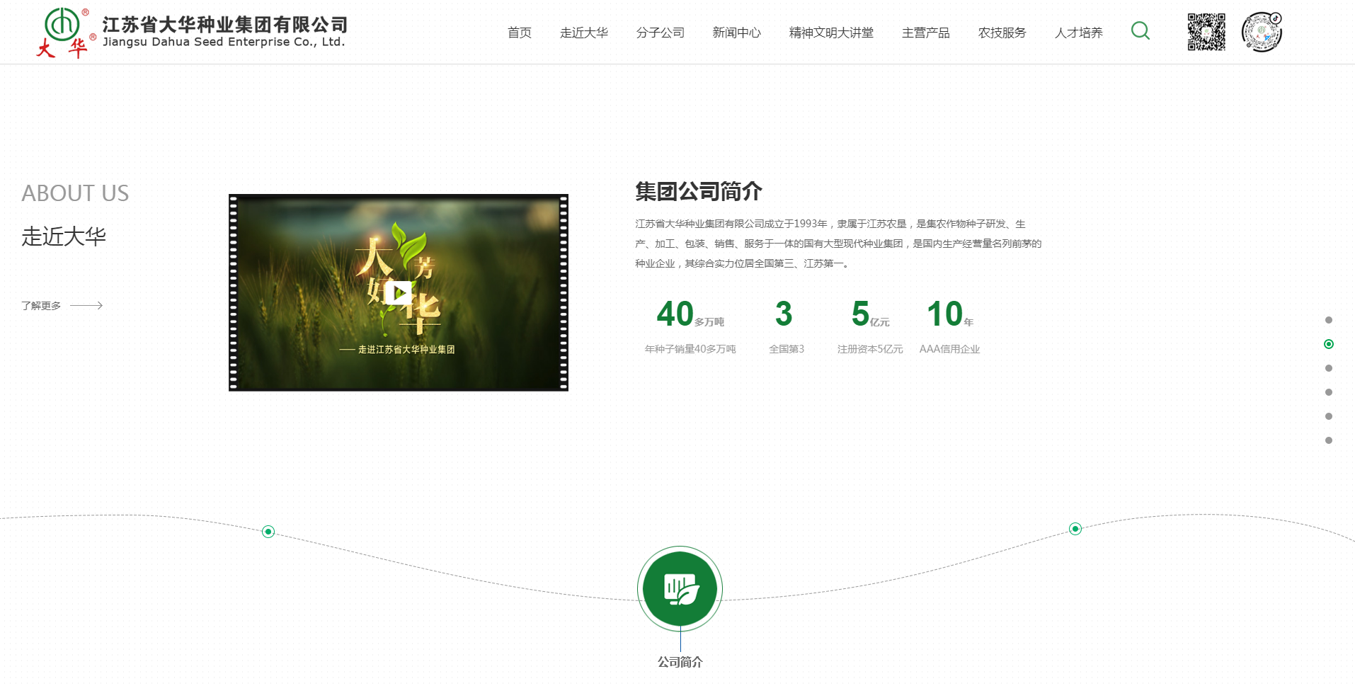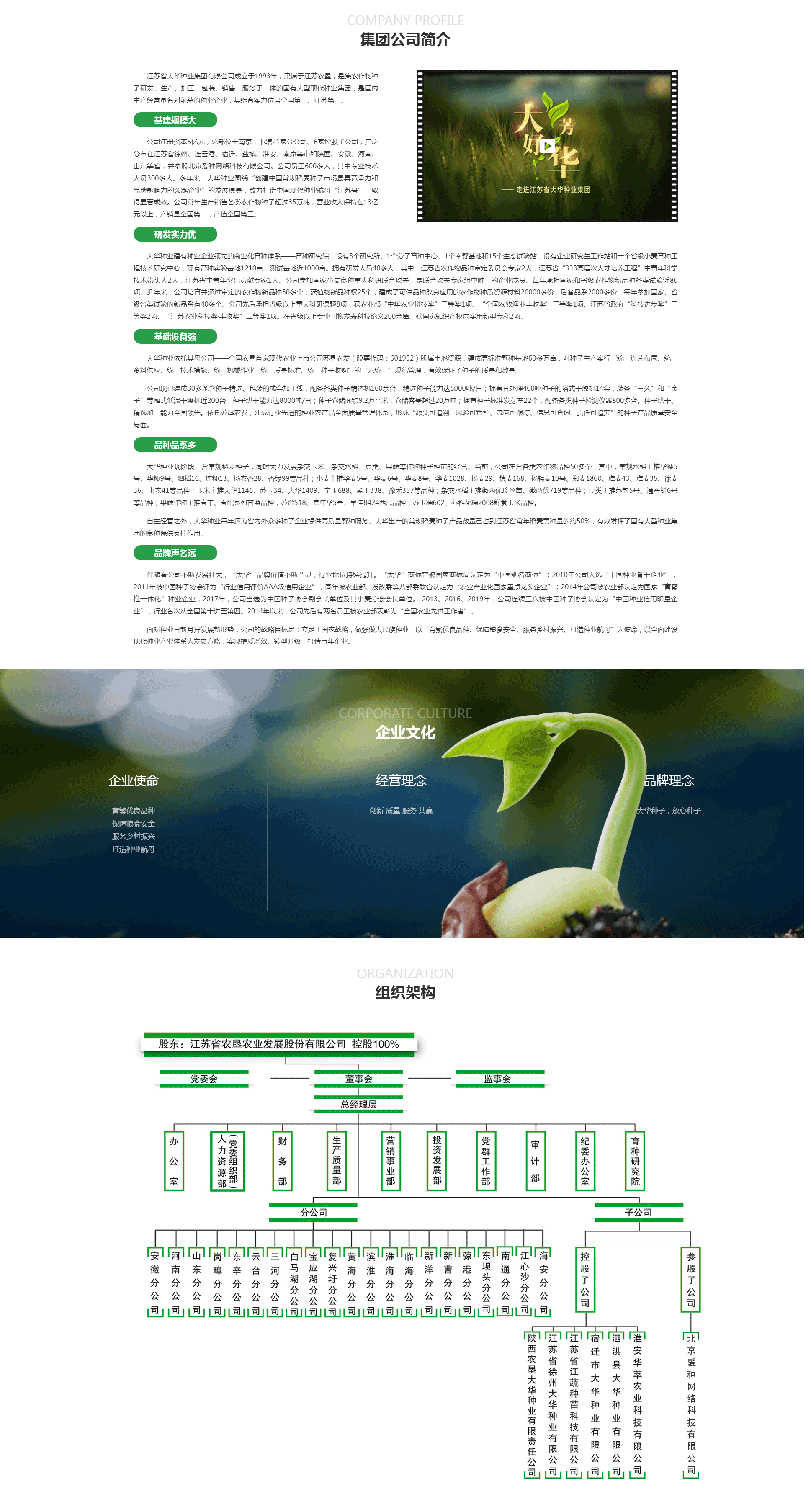 江蘇省大華種業(yè)集團(tuán)有限公司成立于1993年,隸屬于江蘇農(nóng)墾,是集農(nóng)作物種 子研發(fā)、生產(chǎn)、加工、包裝、銷售、服務(wù)于一體的國(guó)有大型現(xiàn)代種業(yè)集團(tuán),是國(guó)內(nèi) 生產(chǎn)經(jīng)營(yíng)量名列前茅的種業(yè)企業(yè),其綜合實(shí)力位居全國(guó)第三、江蘇第一。