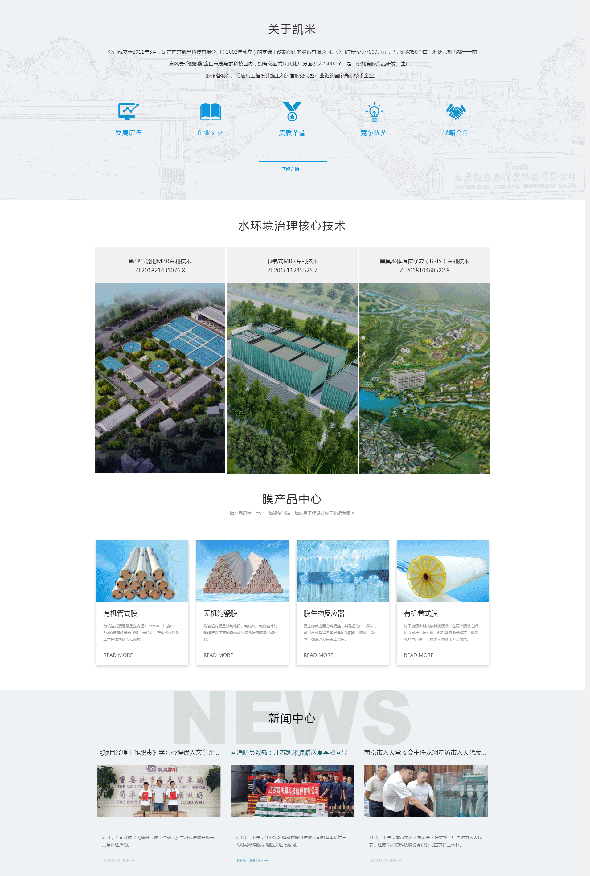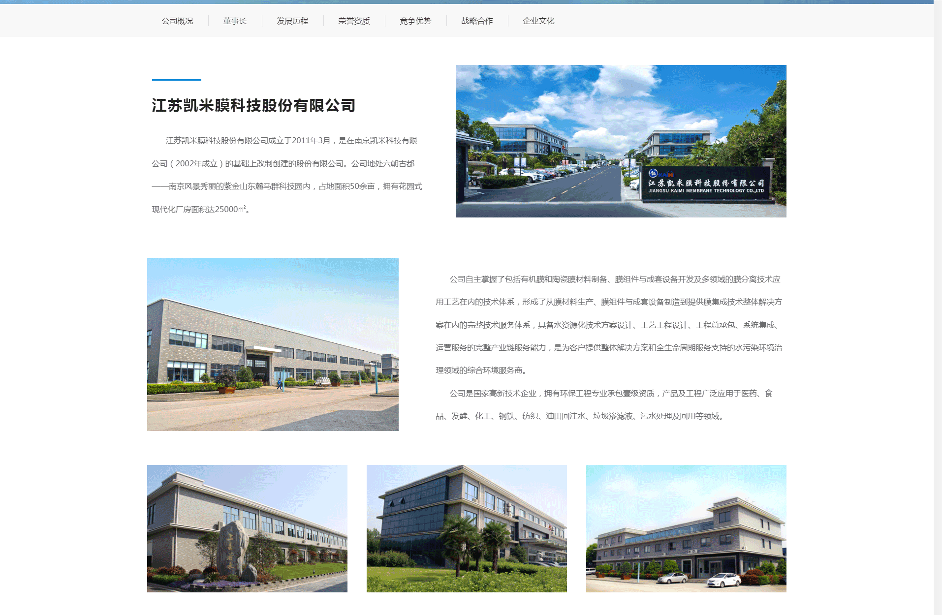 江蘇凱米膜科技股份有限公司成立于2011年3月,是在南京凱米科技有限公司(2002年成立)的基礎(chǔ)上改制創(chuàng)建的股份有限公司。公司地處六朝古都——南京風(fēng)景秀麗的紫金山東麓馬群科技園內(nèi),占地面積50余畝,擁有花園式現(xiàn)代化廠房面積達(dá)25000㎡。